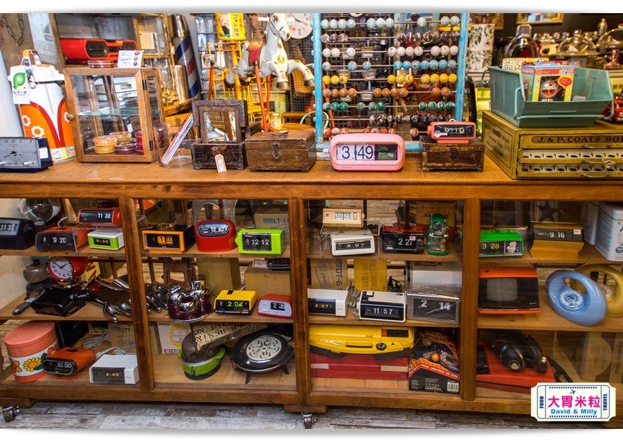 店內右半區都以歐美生活用品為主,現在左半區則是走進日本昭和時代氛圍!!!!看看整座擺了滿滿復古翻頁式時鐘