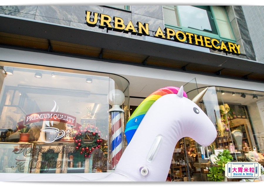 古俬選品,URBAN APOTHECARY,位於浦城街(捷運:台電大樓捷運站)3號出口附近,步行5分鐘左右,彎進巷內立馬看到一隻超大彩虹獨角獸泳圈恭候貴賓非常顯目,