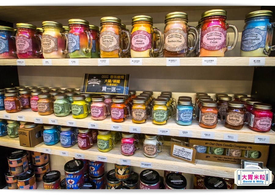 再來這區是女孩們最喜歡的香氛蠟燭系列,使用梅森罐妝點真的好可愛啊,重點香味也太多種了,讓我在現場挑超久!