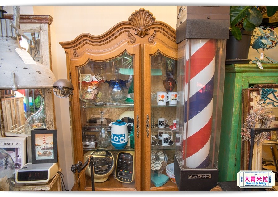 看看門口居然還有早期美容院的紅白藍旋轉燈,闆娘分享這是從美國坐船寄來的,插電後依然可以使用!
