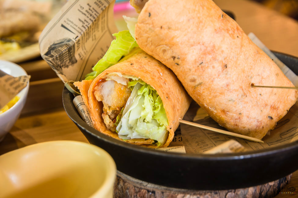 番茄墨西哥餅泰式雞肉捲,一般我們常看到的是原味的餅皮,番茄口味的餅皮還是第一次看到,