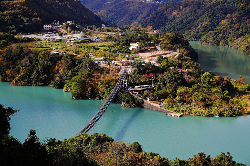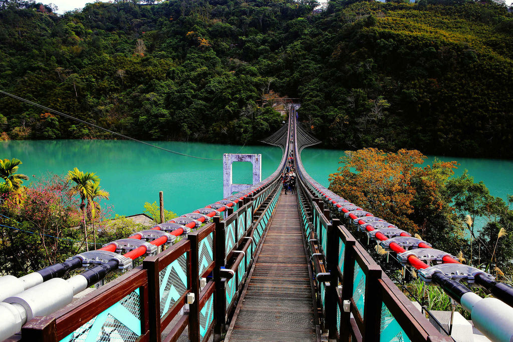 全台最長的吊床式吊橋「新溪口吊橋」,這條跨越大漢溪,連結角板山台地與溪口台地的吊橋,