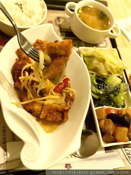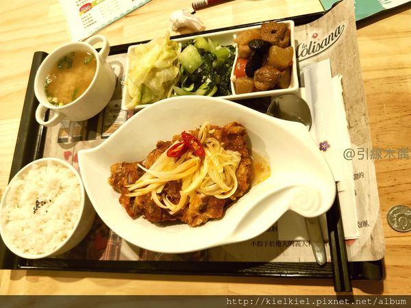 附餐小菜跟附湯味增湯都很清爽,不會太油或鹹,是健康的口味。