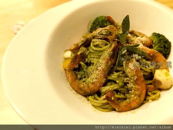 青醬羅勒鮮蝦義大利麵 單點$169 套餐$218