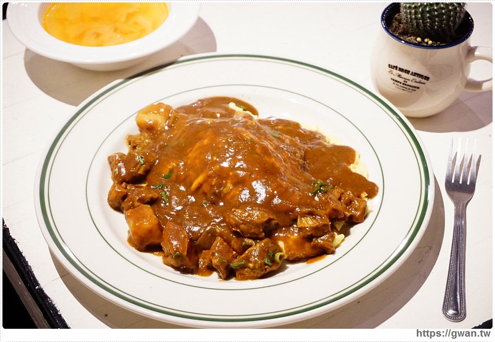 天氣冷牛肉躲進了暖暖咖哩飯裡 $250元