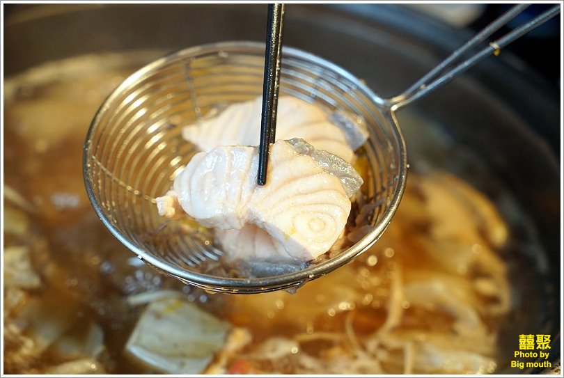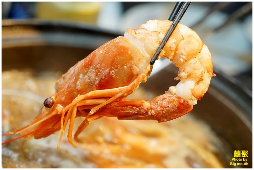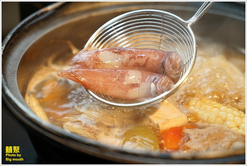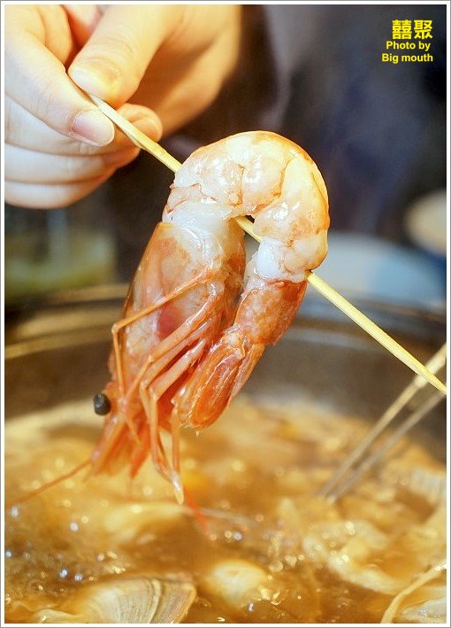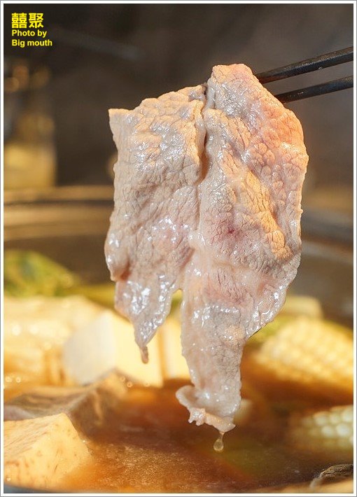 ▼因為採用的是鑄鐵鍋,保溫度相當好,所以稍微涮煮一下、帶點粉嫩色澤就可以起鍋囉!吃起來柔嫩香甜,還帶有甜美的肉汁,單吃就非常美味!