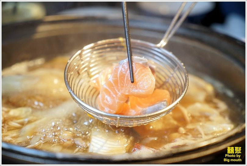 ▼生食級的鮭魚片也是稍微涮煮一下即可起鍋享用!