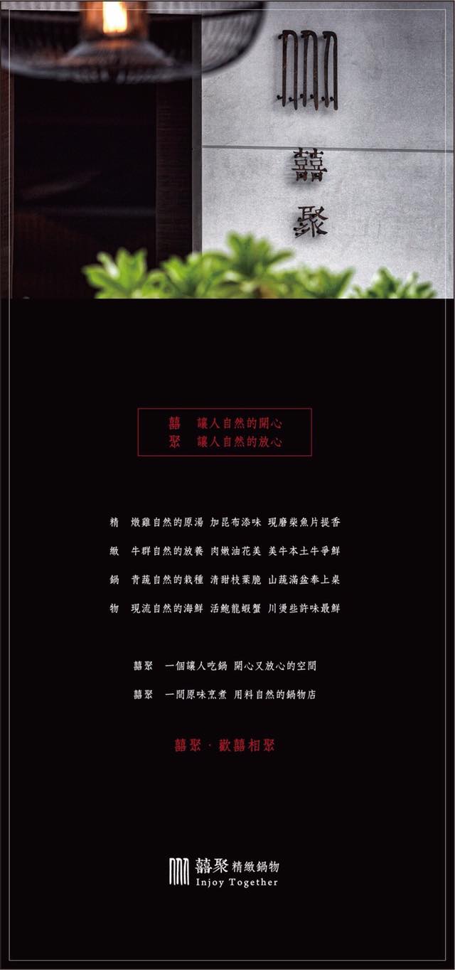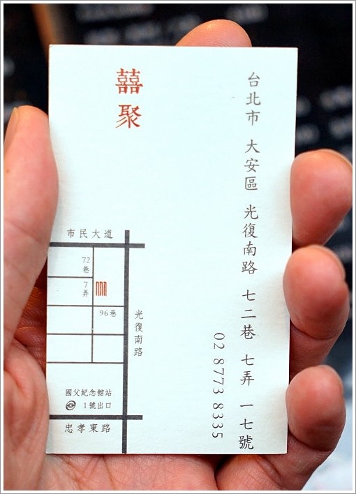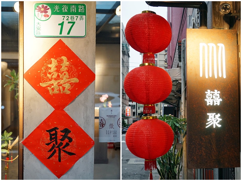 ▼「囍聚精緻鍋物」就位於台北市光復南路的巷弄內、華視大樓附近,店面帶點中式的喜氣氛圍,招牌頗為低調,雖說如此還是吸引不少饕客前往!這裡距離捷運國父紀念館站1號出口步行約5分鐘即可到達,附近也有一些路邊車格跟收費停車場,交通頗為方便!