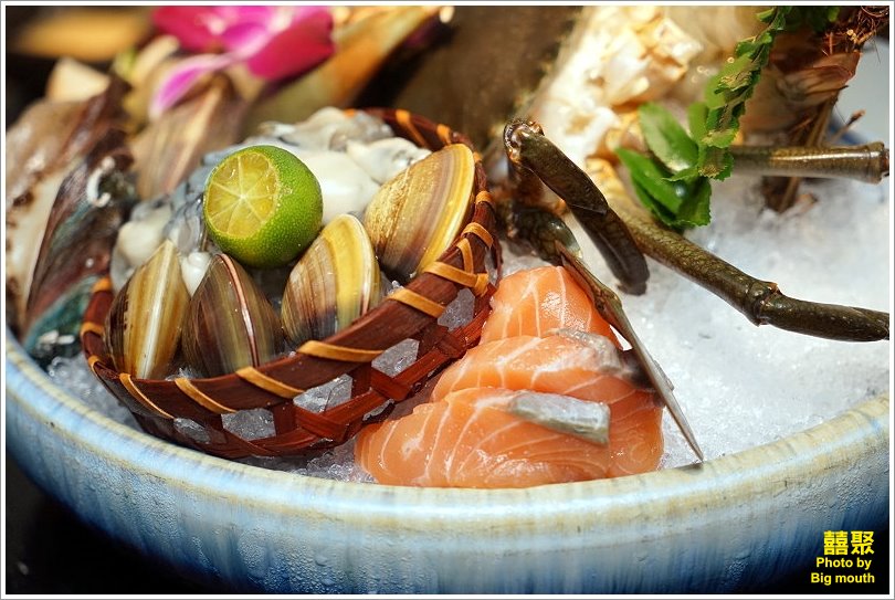 ▼沙公海鮮綜合盤,裡頭除了有剛剛那隻見過面還差點烙跑的沙公之外,還有鮑魚、干貝、天使紅蝦、藍鑽蝦、蛤蜊、鮮蚵、牛奶貝、鮭魚、鎖管等,一整個超有氣勢!