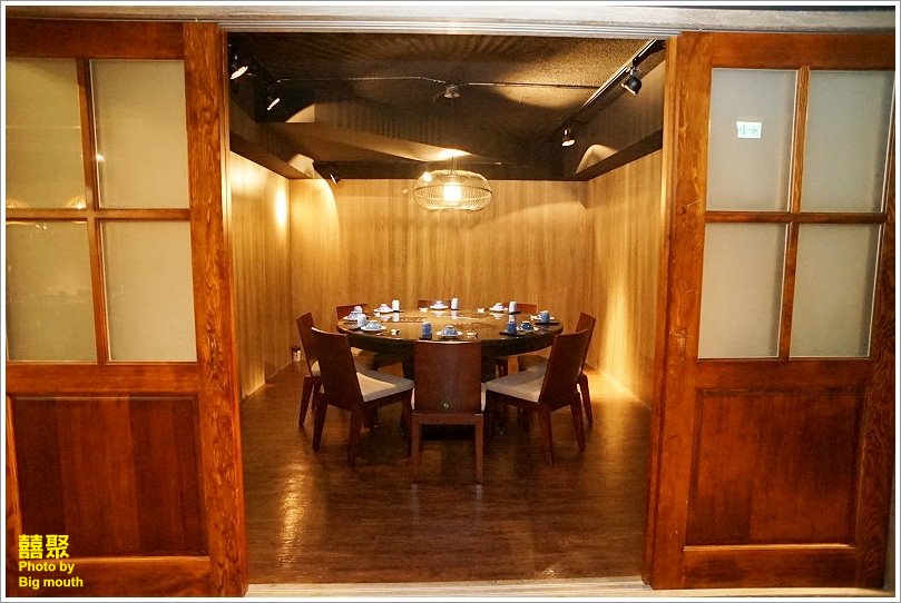 ▼每個包廂提供6~8人的座位區,像這間就是採用圓桌的方式,搭配古樸的木門與典雅的設計,來到這裡就像是來到家裡用餐一樣輕鬆自在!