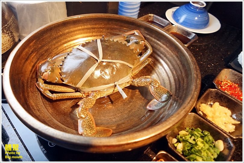 ▼我們這次點的是「鮮紅蟳海鮮&美國Prime穀飼去骨牛小排」海陸雙人鍋物套餐,這次享用到的是沙公,一開始服務人員還會先讓我們看一下沙公本人再拿去廚房處理!
