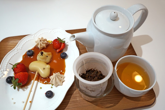 「柴柴的華麗冒險套餐」可選擇搭配焙茶、和風煎茶、日式玄米茶或英式杏桃茶,我選了口感溫潤的焙茶,喝起來茶的厚度不錯而且一點都不苦澀,醇厚的焙茶真的很適合搭配香甜的柴柴糰子。