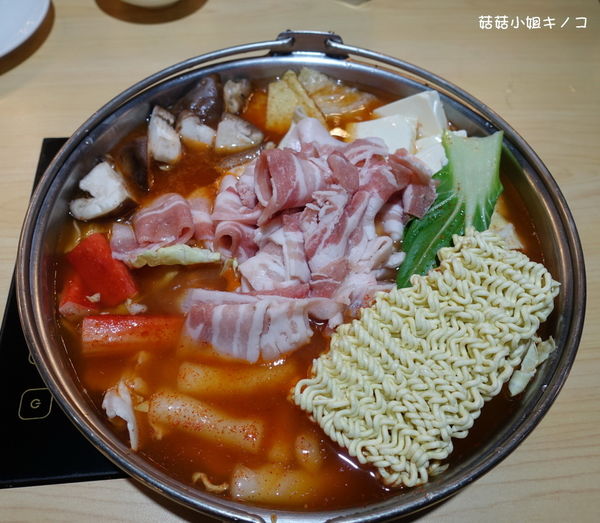 食材放的非常多~年糕、香菇、水餃(?)、豆腐和數量不少的豬肉