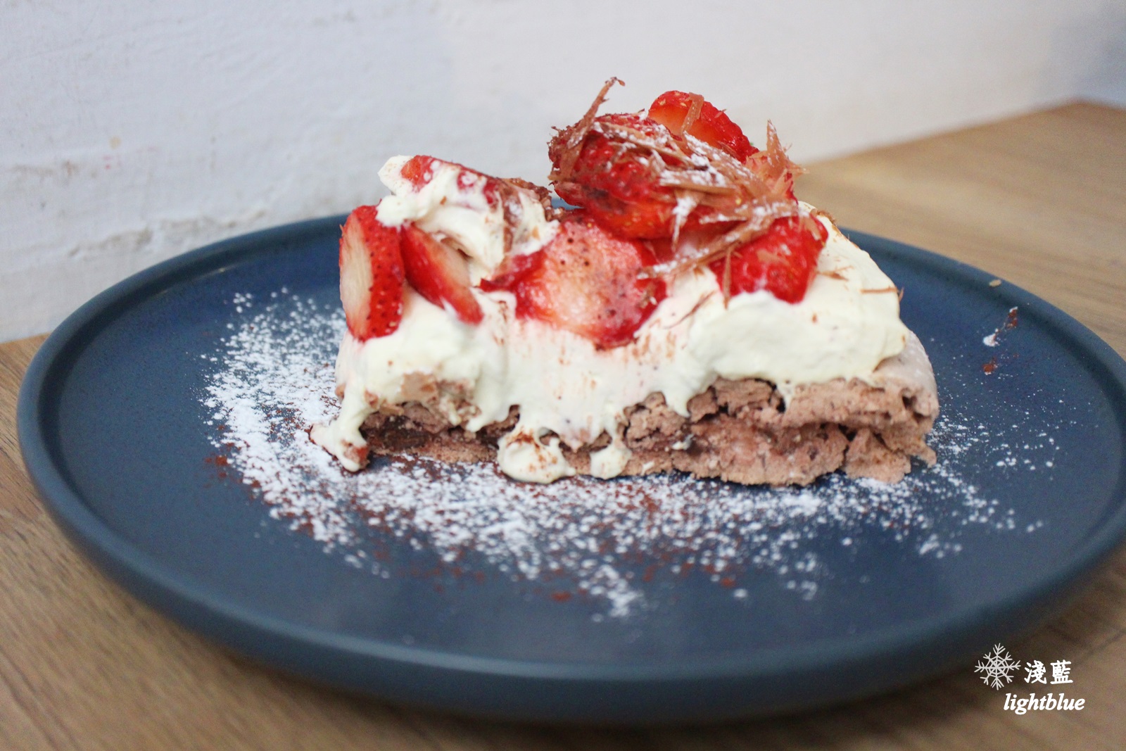 蛋白霜口感酥鬆,巧克力則是散發濃郁香氣,又加上草莓,使得這份甜點很有聖誕節感覺,味道飽滿而香甜,非常令人滿足,會覺得冬天就是要來一份這樣的甜點才對
