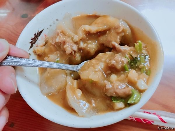 ▼ 肉圓裡頭的肉很鮮嫩 , 另外還帶些清脆的筍子