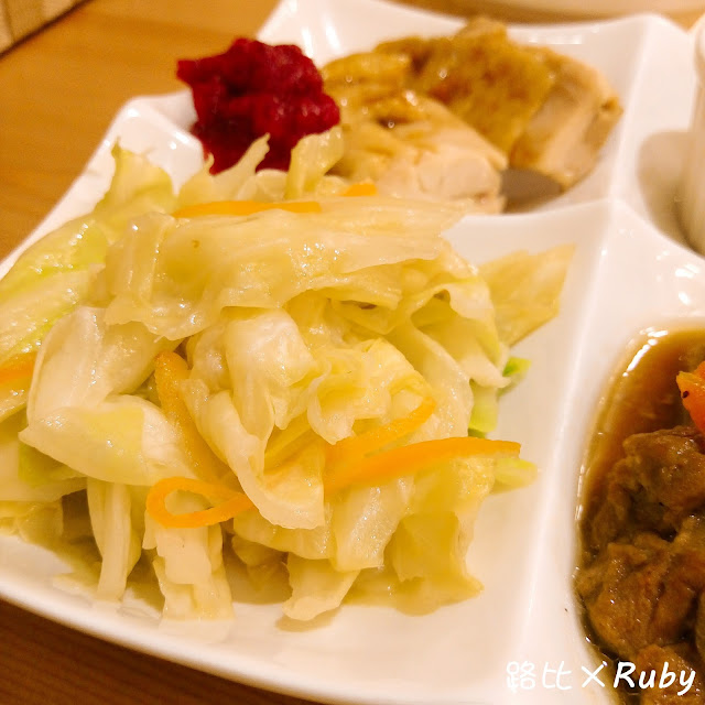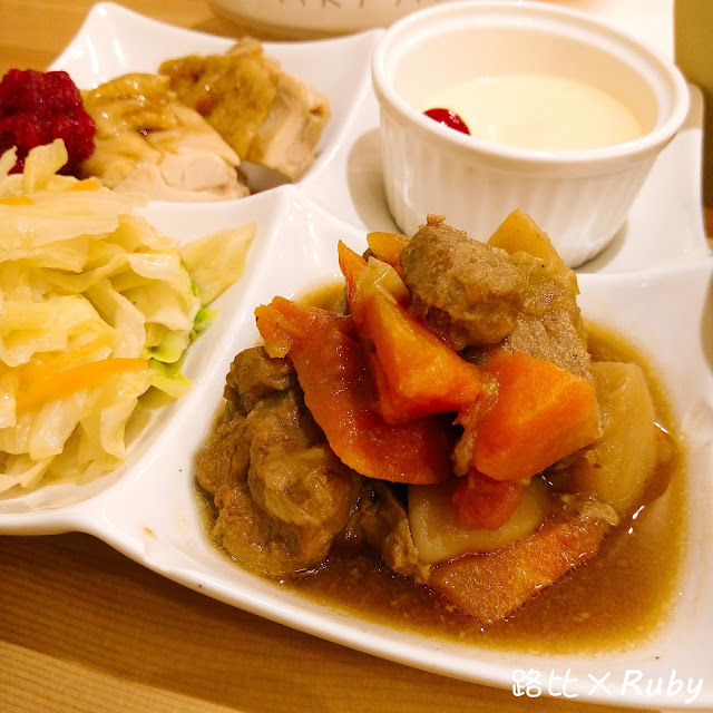 馬鈴薯燉肉佐蒜香去骨雞腿排套餐[NT180] 簡單的四菜一湯一飲品卻是不簡單的美味,蔓越梅入菜很開胃,吃得出店家用心製作無負擔料理的美味。