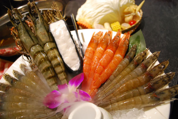 在鍋中放入蝦子看起來相當壯觀,瞬間把湯頭變成海鮮鍋,蝦子原汁都保留在這一鍋裡,肉質本身也蠻清甜,因為食材新鮮,所以色澤也很漂亮,輕燙1分鐘即可撈起。