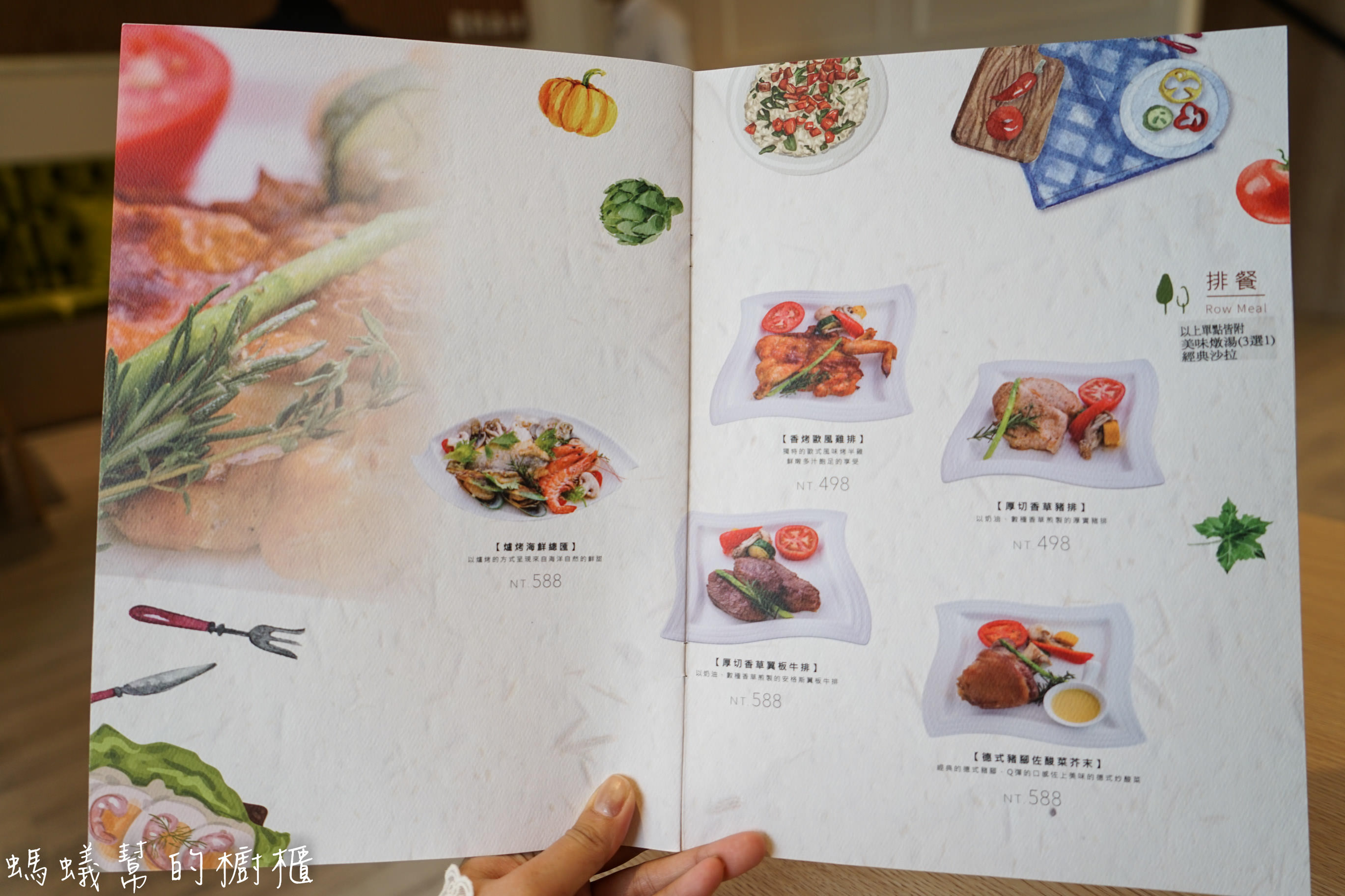 清爽的菜單設計,跟蘿蕬森活裡的環境氛圍相配的恰如其分,翻開菜單後每種餐點都相當吸睛,連我都思考了一會才能選好自己想吃的餐點。:)