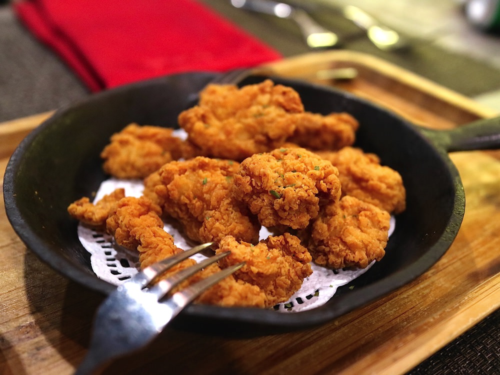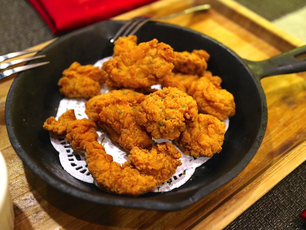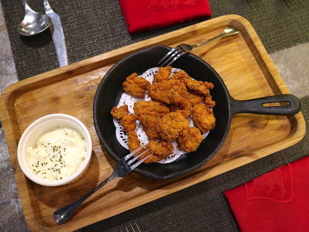 一整盤的雞米花送上,搭配一旁的塔塔醬,外皮非常酥脆,吃起來很香呢!