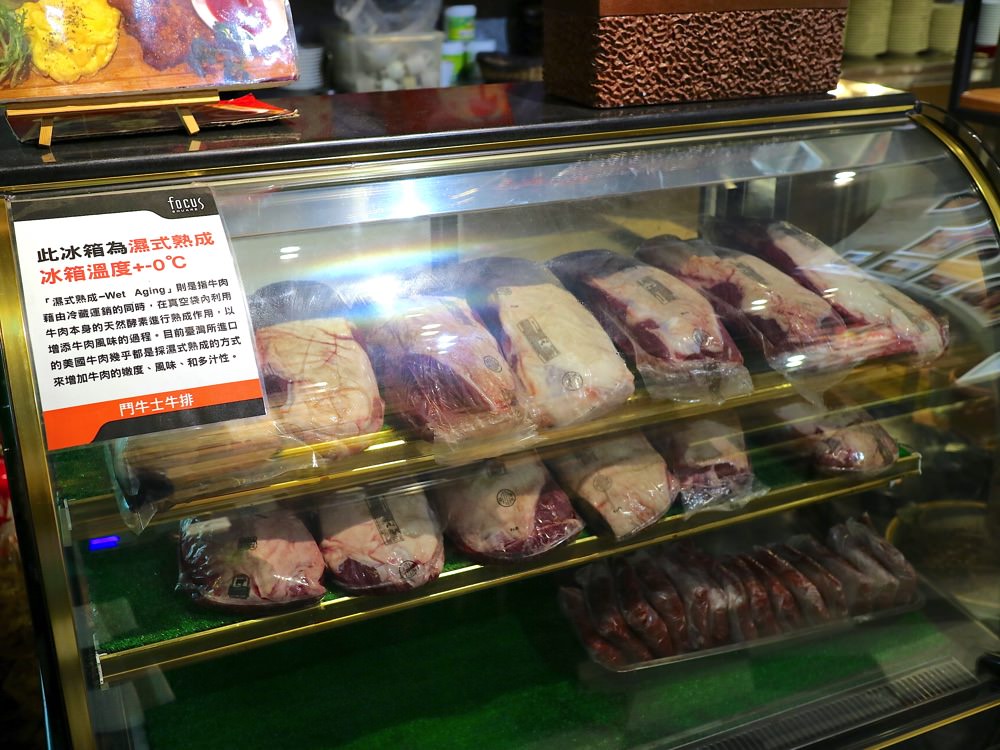 店家強調此為"濕式熟成"的專用冰箱。不虧是台灣大品牌老店家,新鮮看的到!
