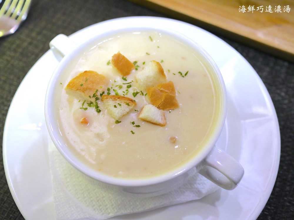 海鮮巧達濃湯,非常的濃郁!裡面料非常的多,每一口都喝的到濃湯搭料,喝完非常飽足呢!
