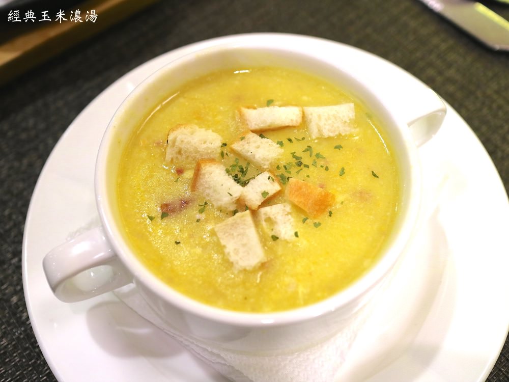 濃湯的部分,有三種口味提供選擇:海鮮巧達濃湯/義式蔬菜牛肉湯/經典玉米濃湯。