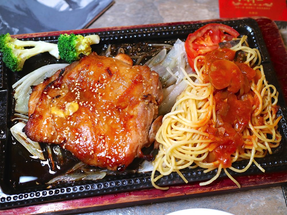 一旁的鐵板麵份量也不少,搭配有大片蘑菇的蘑菇醬,吃完超飽足!