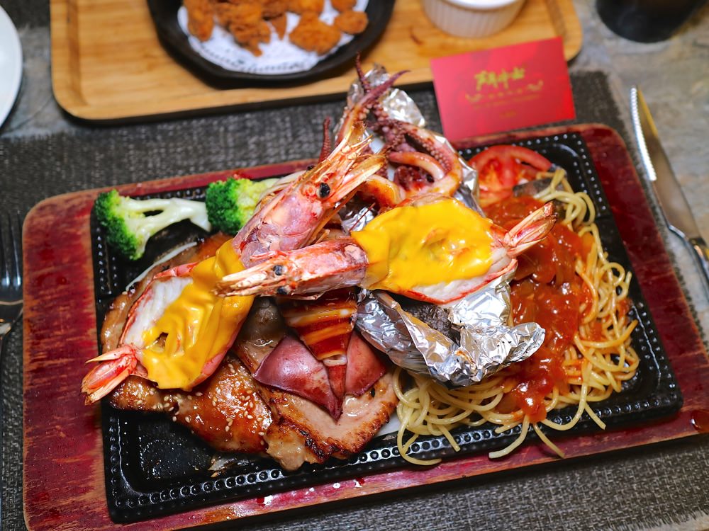 一大個鐵盤,好料疊高高,真的不知道從哪下手!