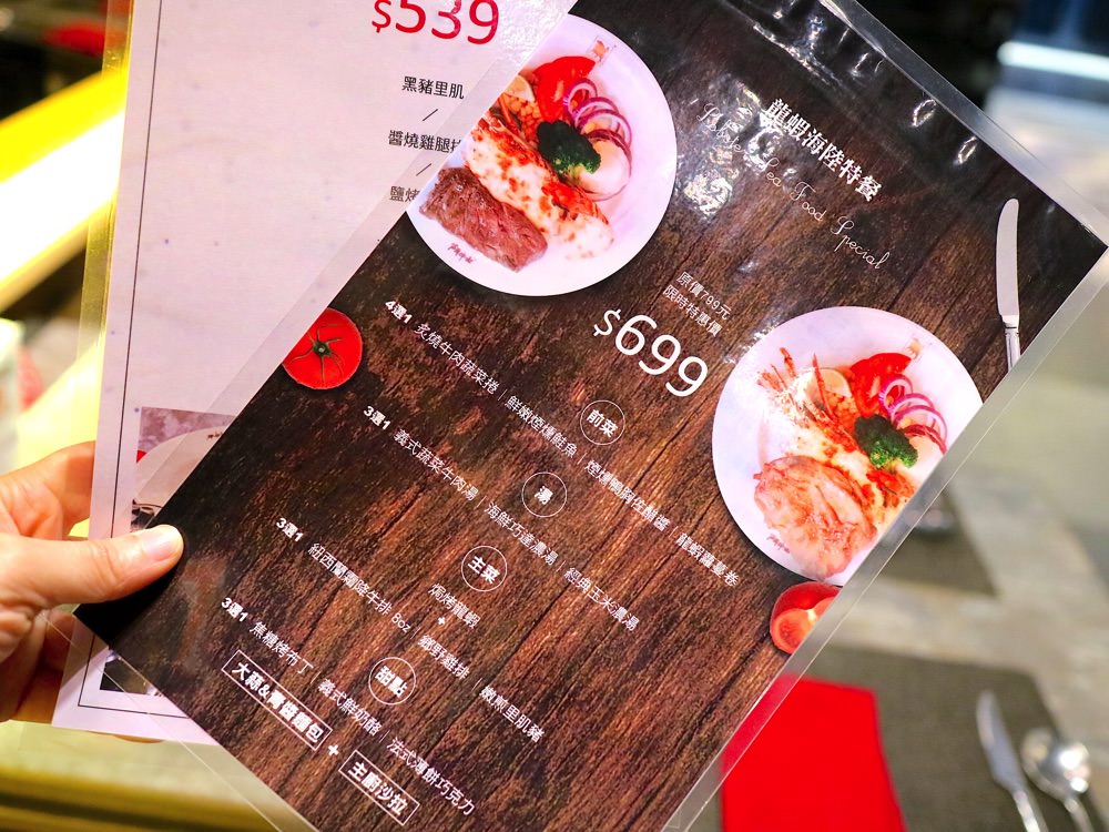 而且,一次能吃到 五種主餐組合的海陸大餐,還有濃湯/甜點/飲料喝到飽。