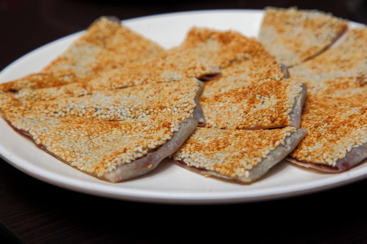 最後一定要來一份豆沙鍋餅來做End!外層芝麻脆脆香香的,餅皮吃起來QQ軟軟的,裡頭的豆沙餡甜度控制的很好,吃起來綿綿鬆鬆的口感也很棒!