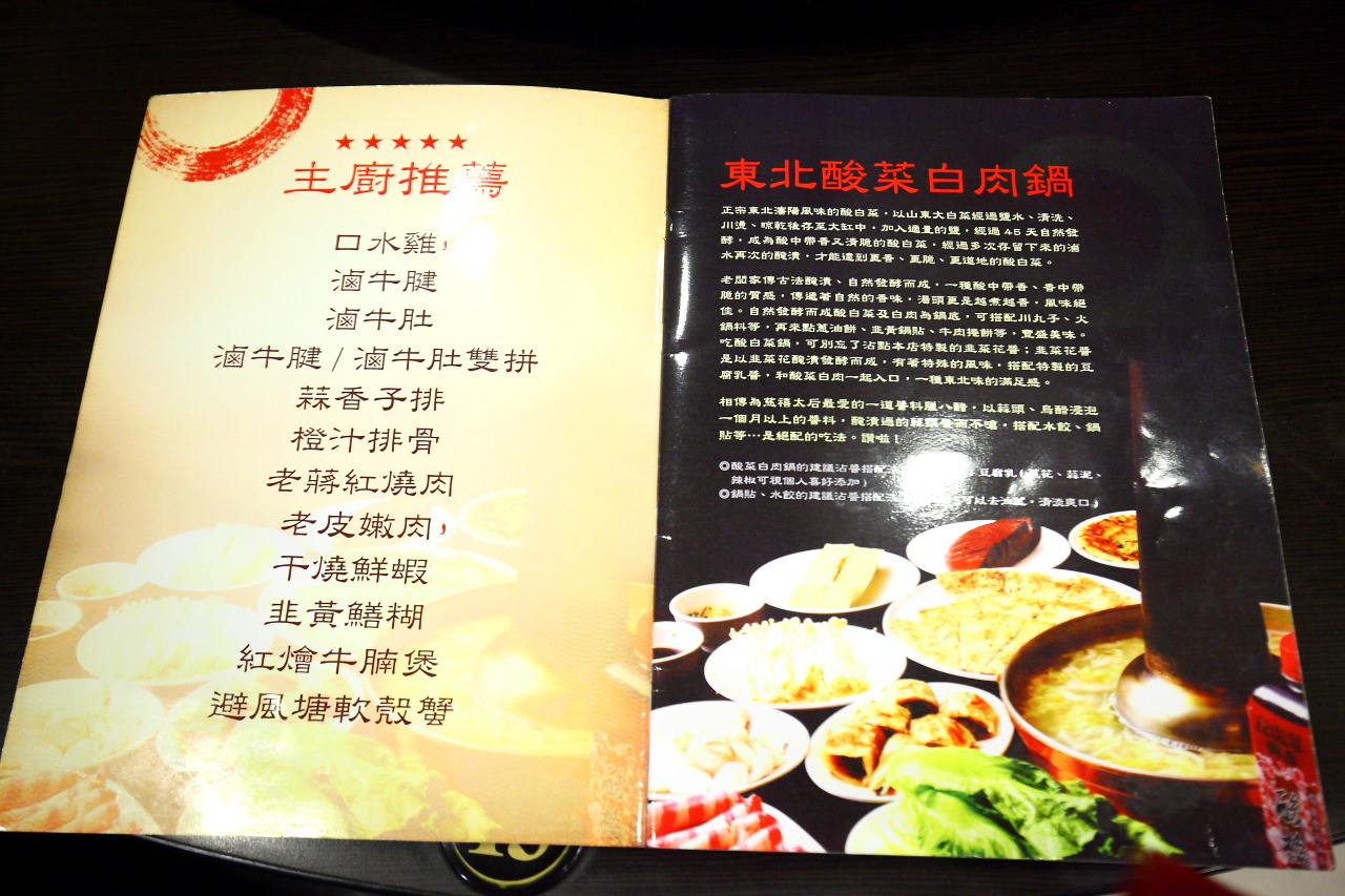 走入老蔣的家鄉味空間中瀰漫著一股誘人的酸白菜鍋的味道,光聞就餓了,用餐空間看的出來有些歷史,不算新穎但也算窗明几净,老蔣的家鄉味以正宗東北瀋陽風味的酸菜白肉鍋聞名,並且有各式菜系的私房菜,經典川菜老皮嫩肉、口水雞、壁風塘軟殼蟹等等,店內還有正宗山東味的蔥油餅、手工烙餅跟捲餅,這些懷舊老菜式,在老蔣的家鄉味通通吃的到,可以說是帶長輩來這嚐鮮聚餐的首選!