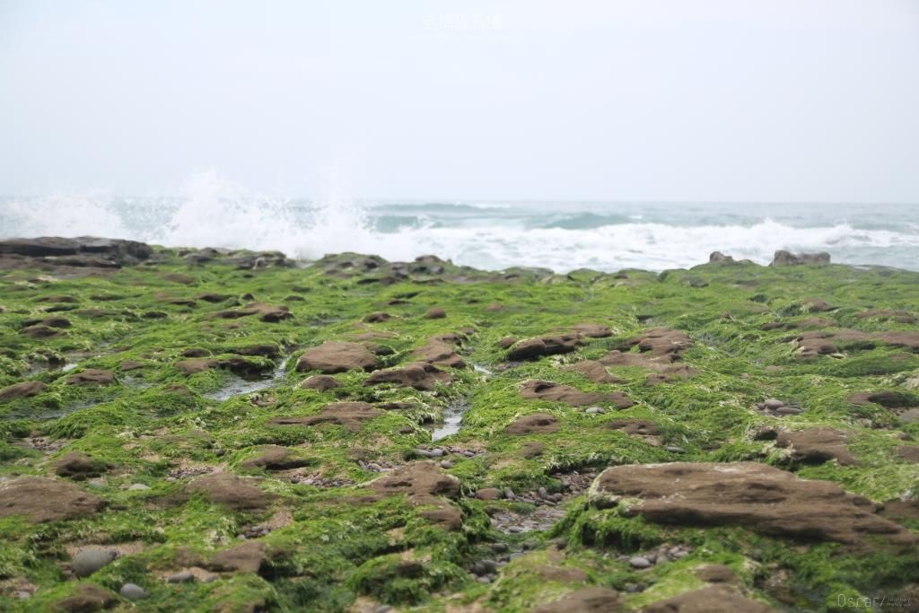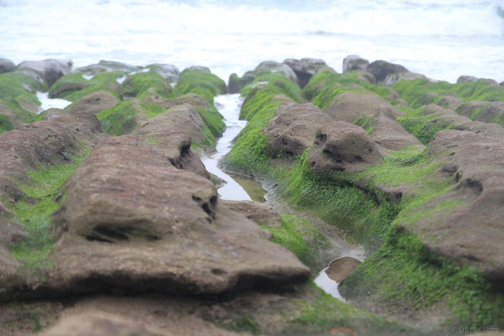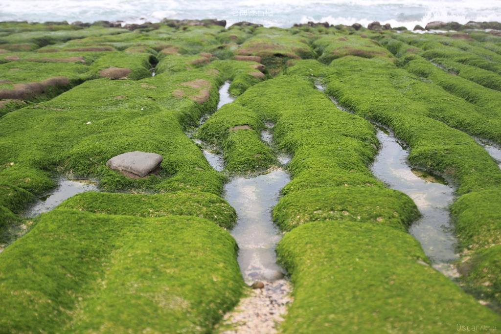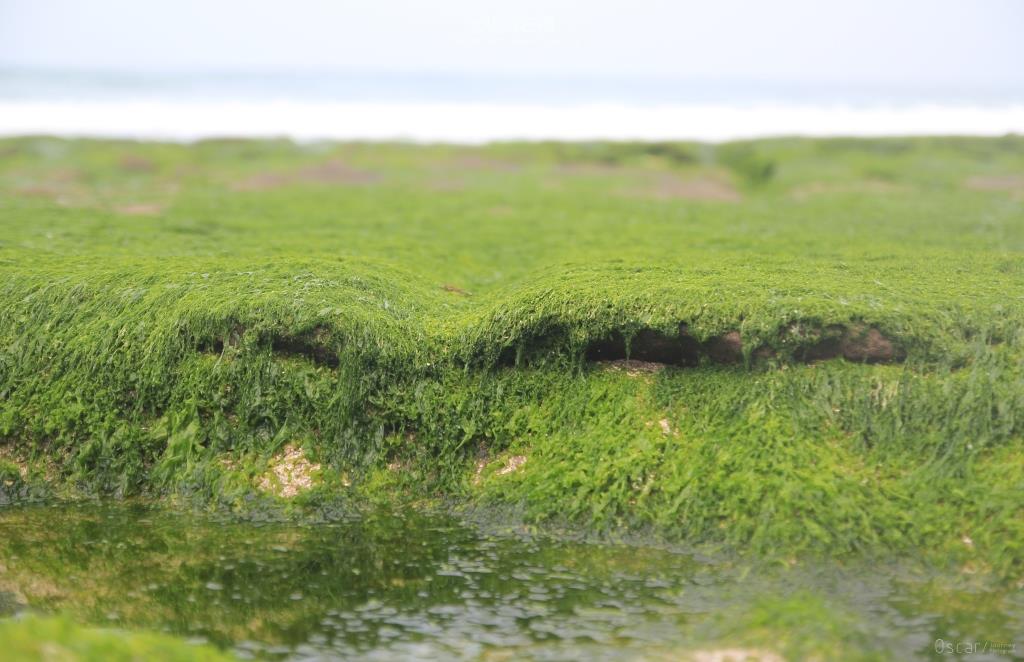 透過海水的滋養以及東北季風的助長 促使綠色的海藻 逐漸在石槽上生長
