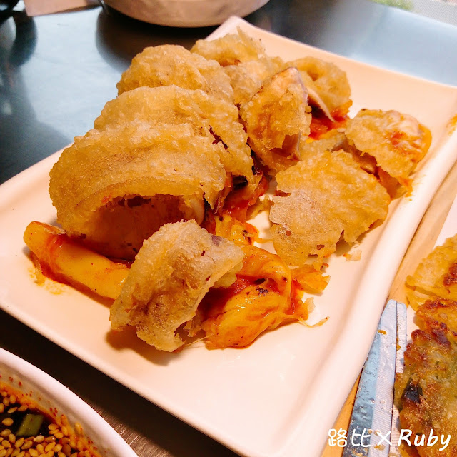 包著吃的辣雞腳炒年糕(很特別,目前在別家韓式料理店還沒看過,還是我見識淺XD)