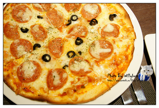 錦繡披薩,一整個的披薩兩個人完全沒有吃完的可能性,但是他又真的很好吃,酥脆的外皮和味道都很棒,我們很努力的吃了半個!