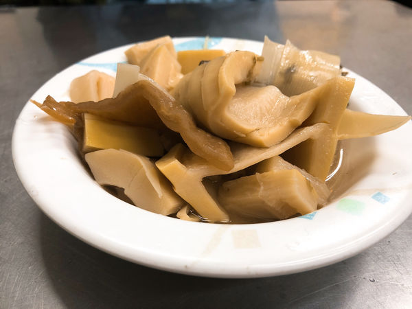 二訪,這是今天叫的菜色,一個切仔冬粉湯、乾麵、豬心湯、桂竹筍小份及鵝肉切盤兩人份$170