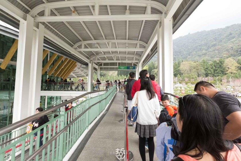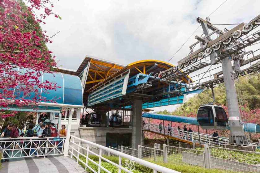 賞完櫻花拍完照,我們計畫先體驗纜車,搭到日月潭的水晶餐廳用餐後,回程在進園區玩遊樂設施。
