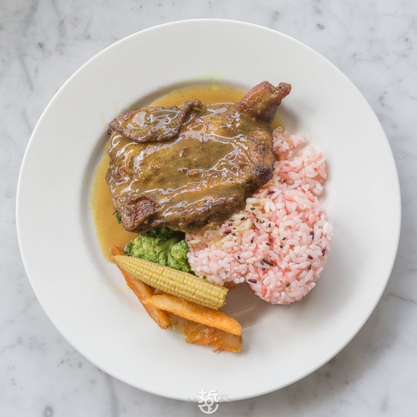 餐廳點餐取餐都是自助式的,需等候的餐點會發一個震動提醒器給你。我們點兩個藍帶豬排堡、一份少女心雞餐以及照燒豬排餐。