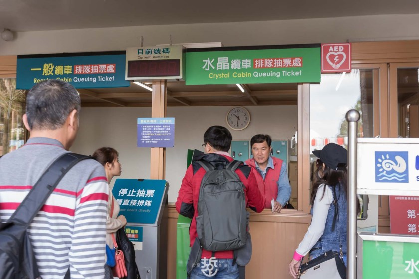 日月潭纜車車廂分為一般車廂與水晶車廂兩種,搭乘水晶車廂須先抽號碼牌,可在高空360度無死角的觀看風景,但車廂較少,比例是每4個有1個,所以想搭水晶車廂的遊客請多加耐心等候。