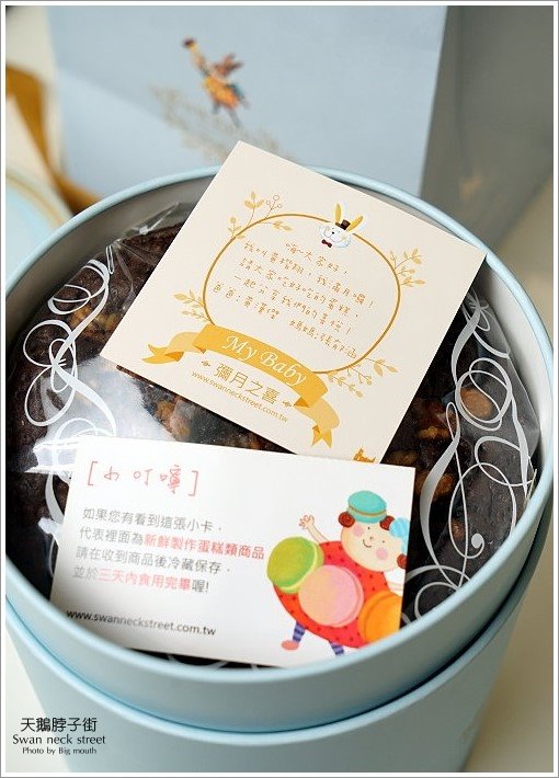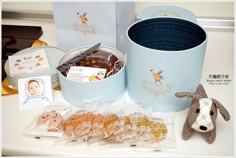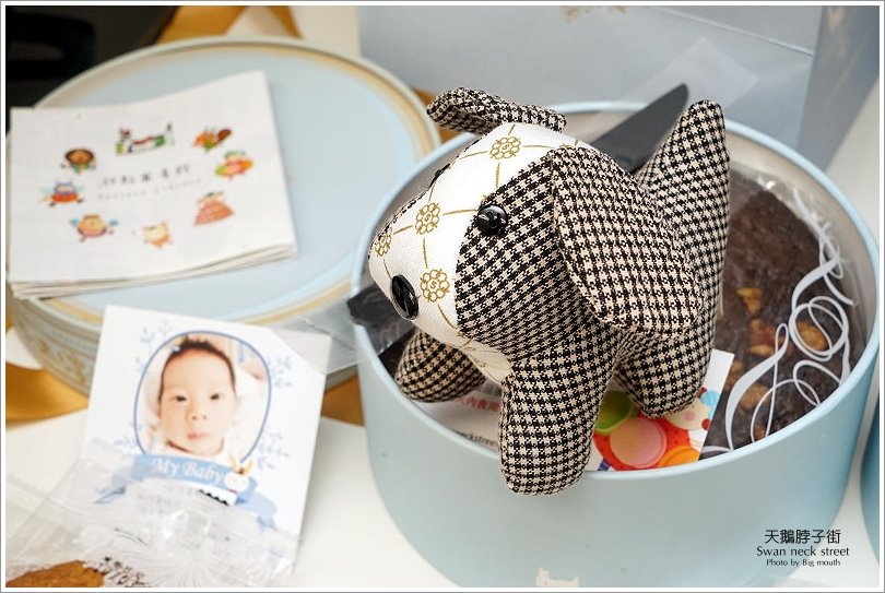 隨著大口家的小口弟出生(沒錯,正是三寶~),第一件事當然就是要來分享他的彌月蛋糕啦!「天鵝脖子街」不僅有各式各樣的手作餅乾、喜餅、彌月禮盒,也是不少藝人朋友指定的客製化喜餅、彌月首選!沒錯,大口看中的正是可以客製化這件事,且最特別的就是它可以上網動動手指就能一次搞定,想要怎麼搭就怎麼搭,隨個人喜好訂製出最獨特、最有自我代表性的客製化彌月禮盒!大口這次選的是彌月圓筒禮盒,不僅可以選擇上層的新鮮蛋糕口味,底層更可以選擇六種品項的手作餅乾、甜點,甚至還可以搭配店家特製的拼布寶寶玩偶,不僅有紀念價值又可以收藏,質感也非常好!