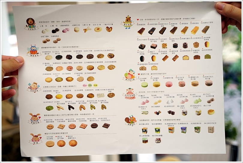 ▼可以選擇的甜點種類足足有這麼多,說是品項圖書館一點也不為過啊XD他們家餅乾有分為三大類,分別為花漾、繽紛、布拉系列,如果喜歡清爽不膩口的朋友可以選擇布拉系列,不僅低糖、少油又高纖,不僅非常對長輩的味蕾,對身體的負擔也較小!