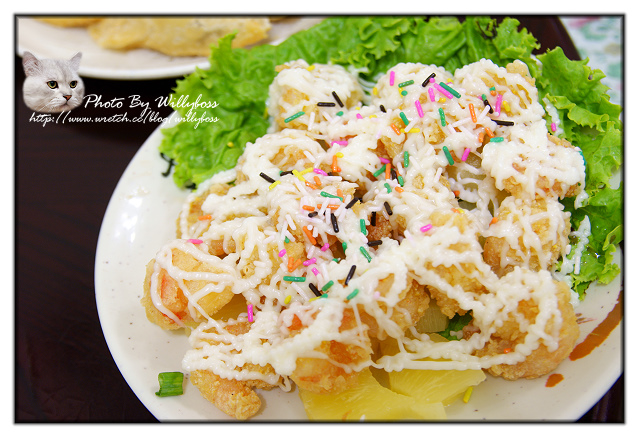 鳳梨蝦球160元,量看起來很多,不過蝦很小吃起來有點水水的,算是比較不推薦的菜色。