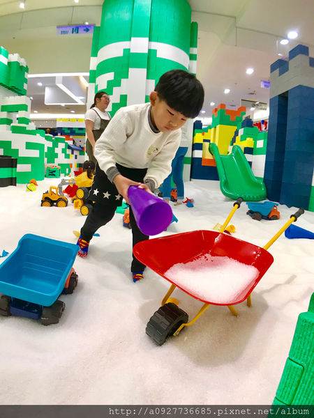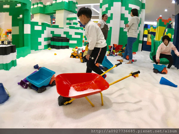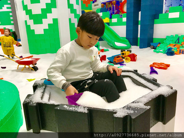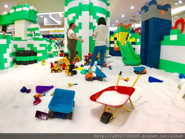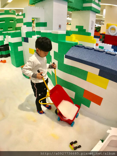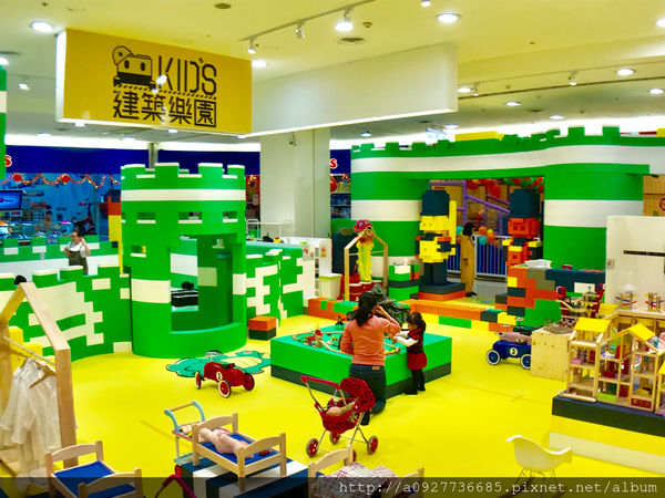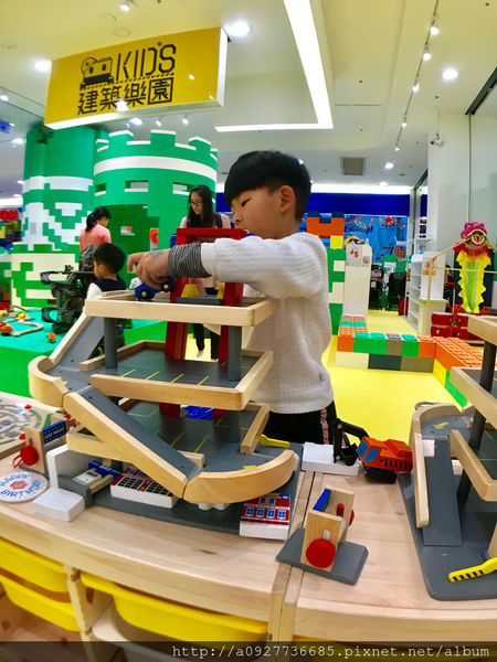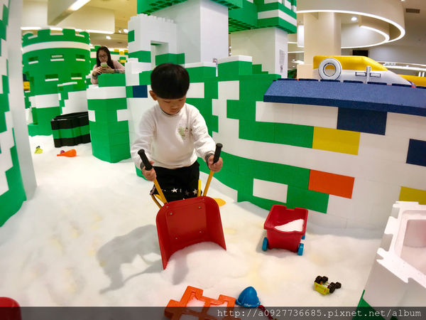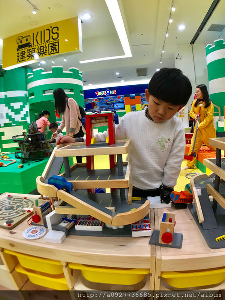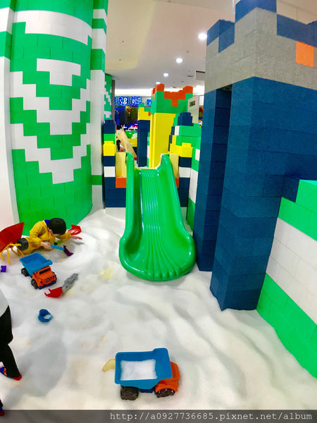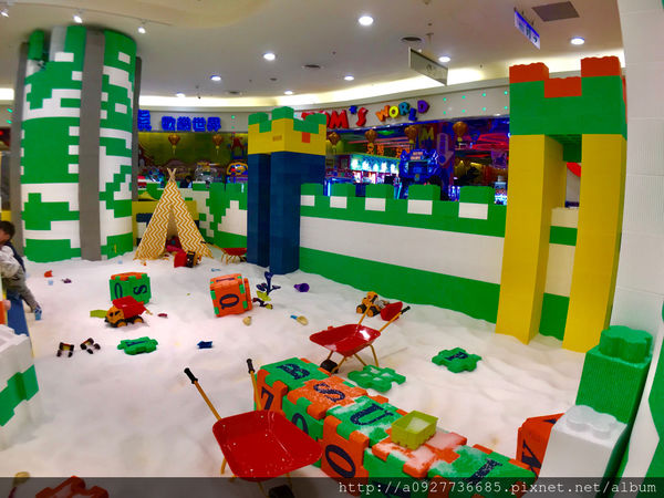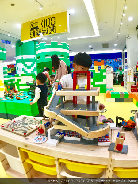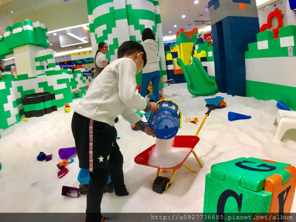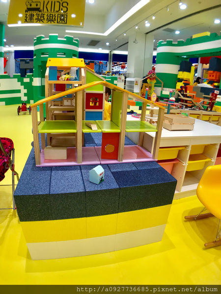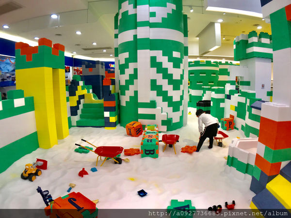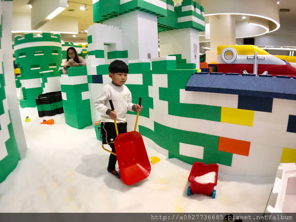 今天我問他要不要換一間玩玩看,【KID'S 建築樂園】主題是夢想城。整座城堡樂園裡都是使用韓國原裝進口環保EPP材質堅固耐用,安心、無毒、環保的巨型積木搭建的,除了可回收之外;還能製作傢俱。