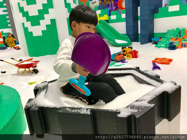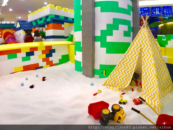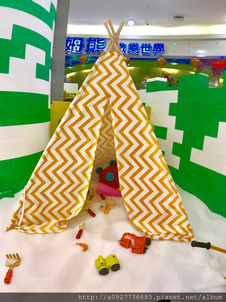帳篷、小車車、雪白沙地,這區適合大人與小孩一起同樂,在帳篷裡感覺像在自己的秘密小基地。