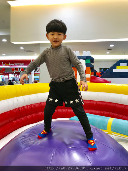 氣墊跳跳床,氣充得超飽!所以跳起來會很過癮,可以耗去滾兒大量體力。滾媽還跟滾兒在跳跳床上玩追逐戰呢🤗