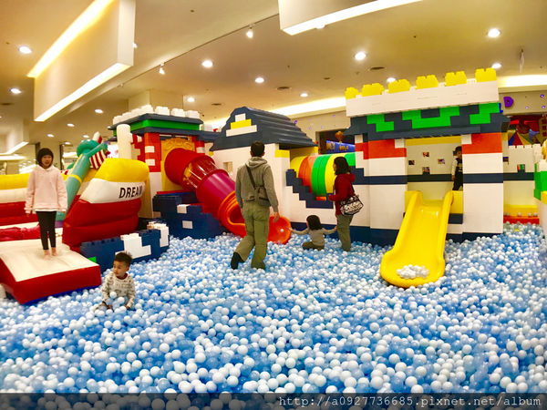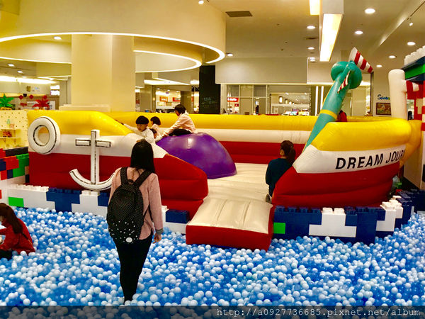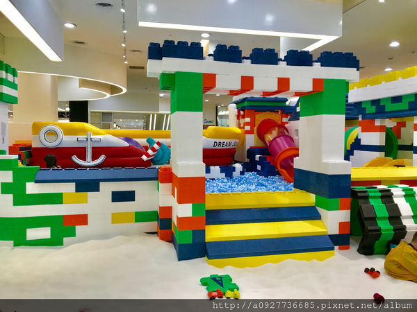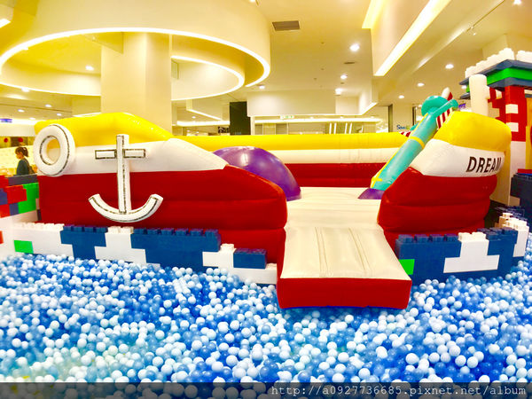 夢想城裡面遊戲內容豐富多樣化,有溜滑梯球池、海盜跳跳船、雪白沙坑、益智遊樂區、變裝區、積木區...。雖然佔地不大,但也夠小朋友玩了
