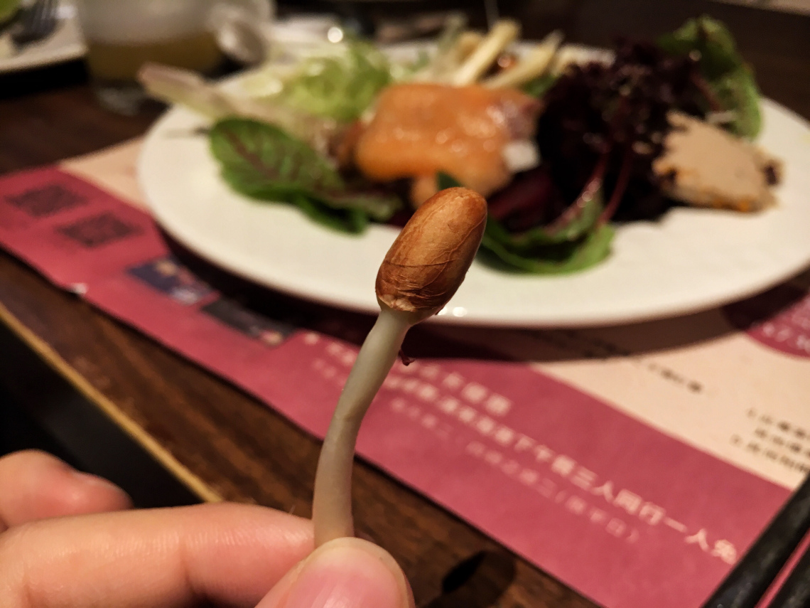第一次吃到長得像瘦版方吉君的花生芽,吃起來只有生菜味沒有花生味