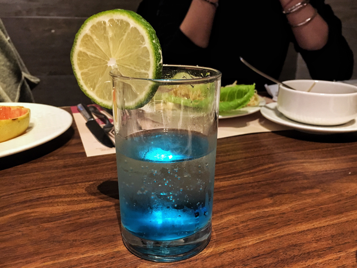 有咖啡、無糖綠茶、現打果汁、非現打果汁,以及DIY氣泡水加藍色糖漿,也有冰塊自行添加