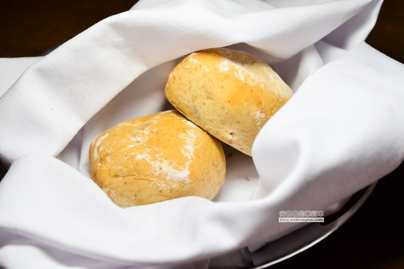 法式手工麵包佐松露奶油:將鬆軟溫熱的麵包對切後,在放入花朵造型的松露奶油,奶油接觸麵包瞬間就慢慢融化,輕輕鬆鬆就能均勻塗抹,入口的堅果和麵包香氣戰勝一切