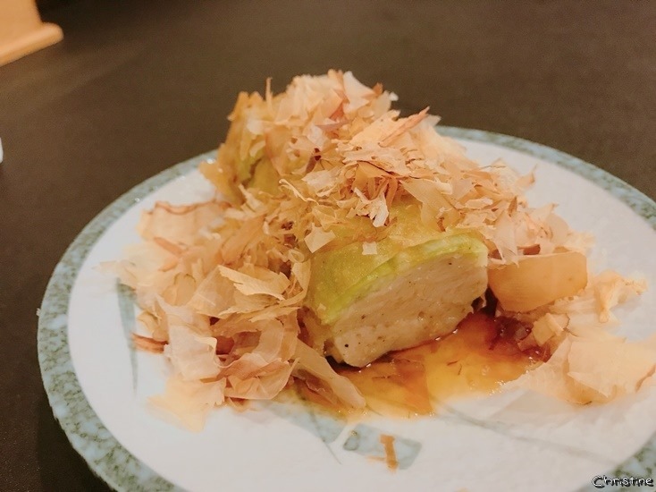 配上香甜的醬汁 , 上方再撒些柴魚片 , 真的口水都留下來啦