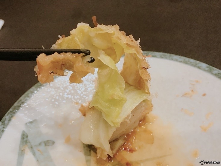 高麗菜捲被滿滿的柴魚片鋪上